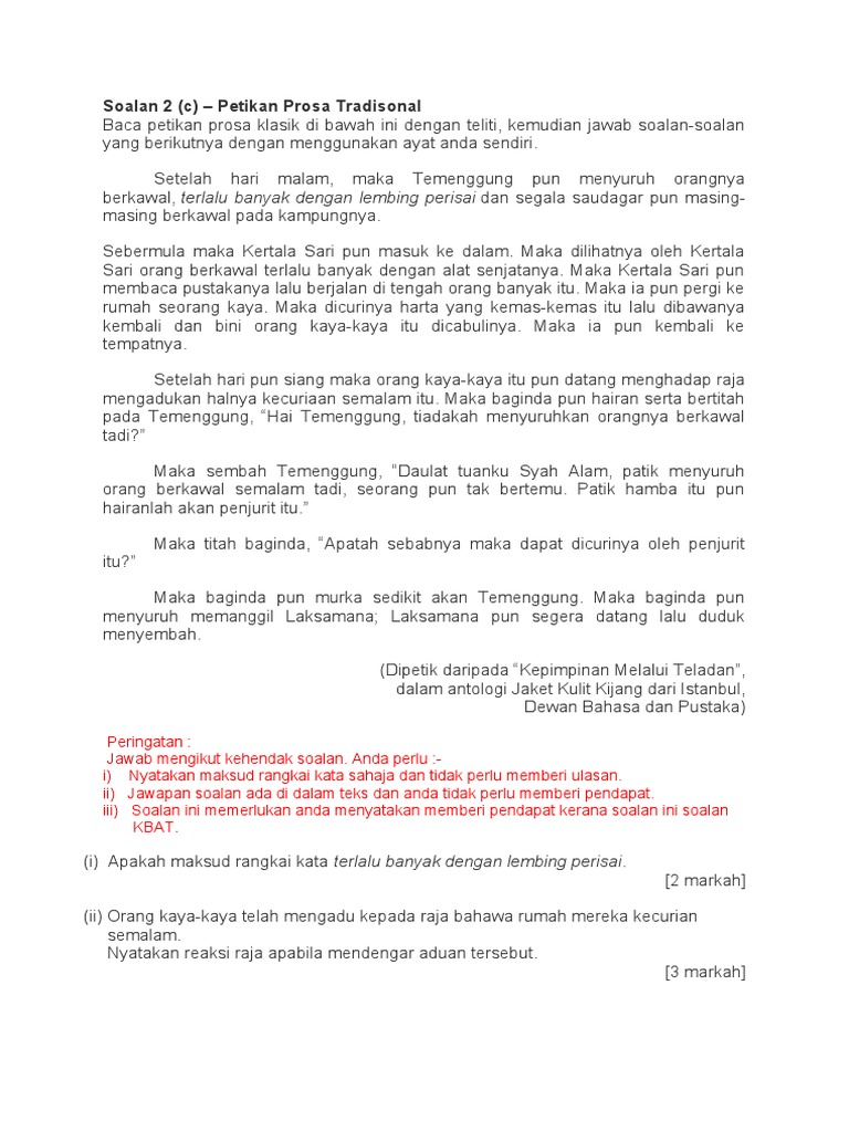 Soalan Pemahaman Prosa Tradisional Kepimpinan Melalui Teladan Dalectzx